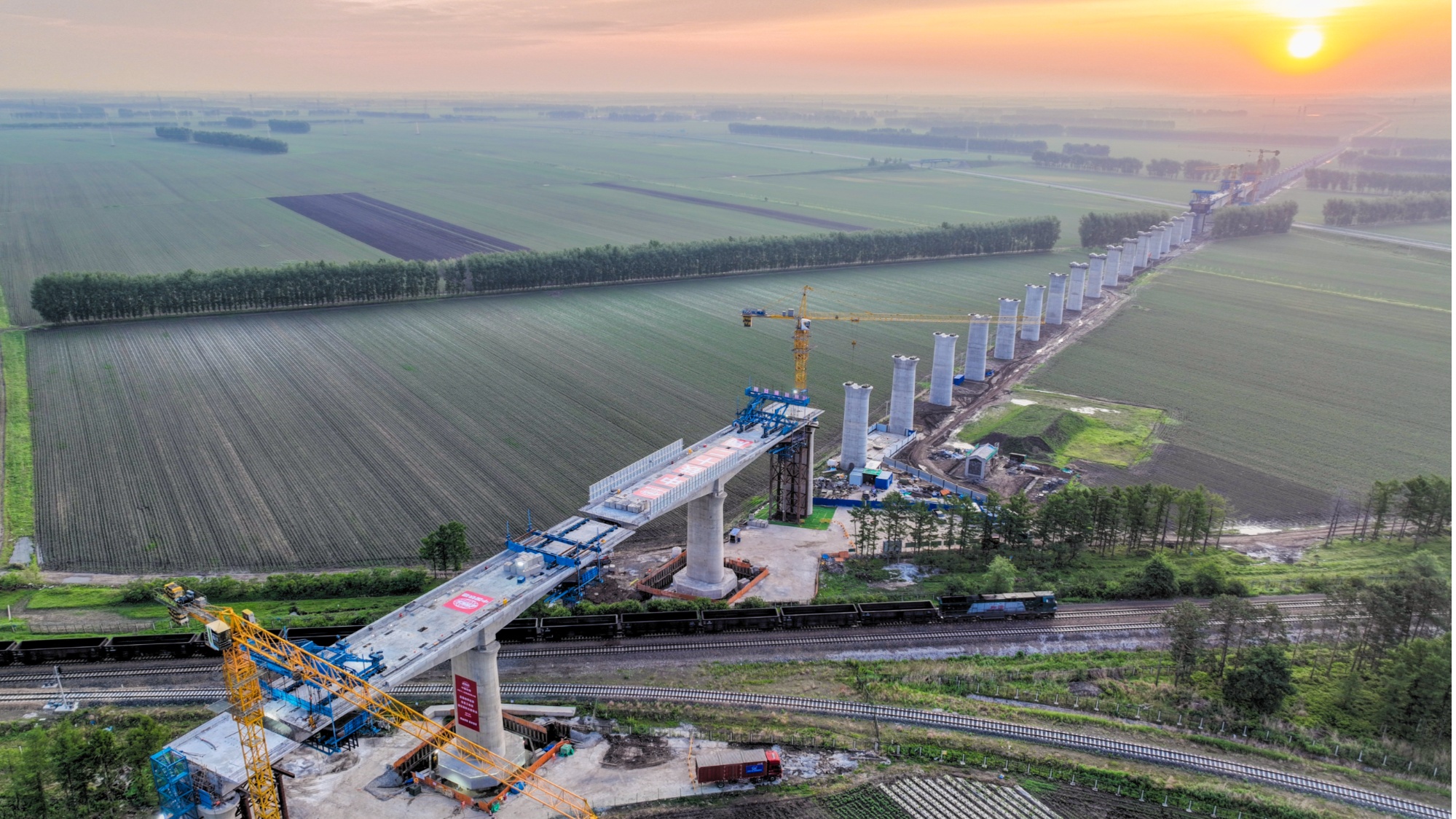 哈伊高铁哈尔滨至铁力段全线最大跨度转体桥完成转体对接